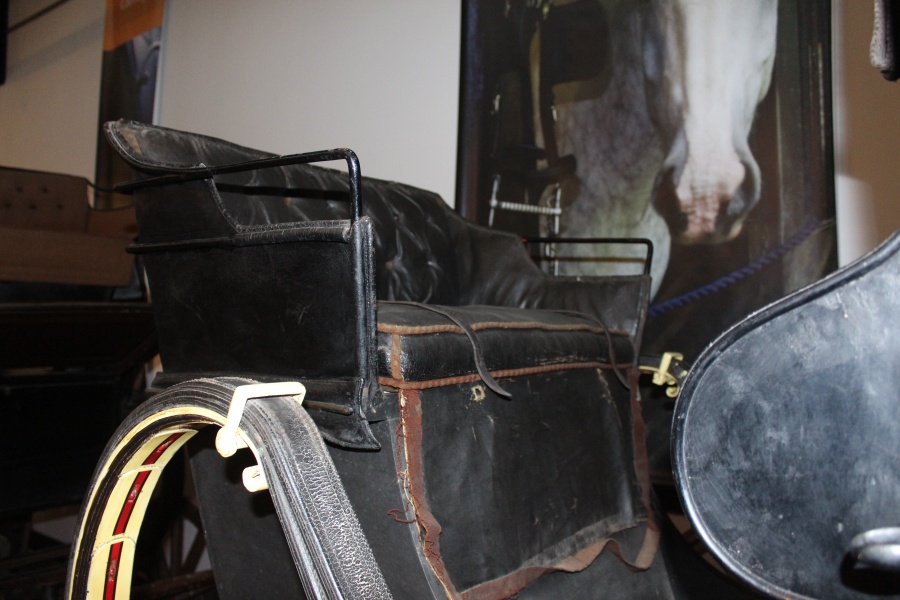 The Anglesey Travelling Chariot is one of the earliest in the collection at Arlington Court dating from around 1815. This date can be derived by certain features such as the grease axles and the whip springs.